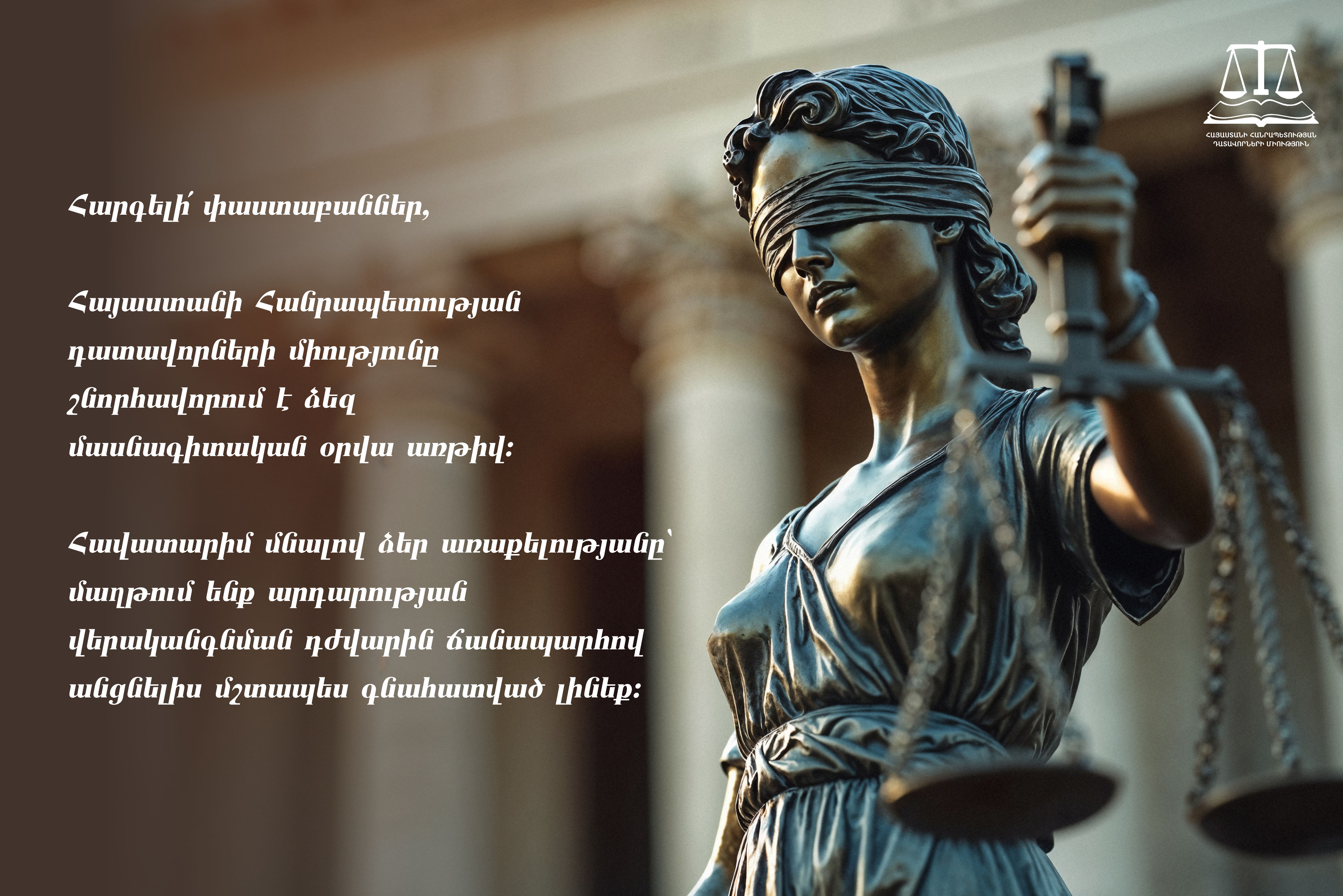 Հայաստանի Հանրապետության դատավորների միությունը շնորհավորում է ձեզ մասնագիտական օրվա առթիվ: